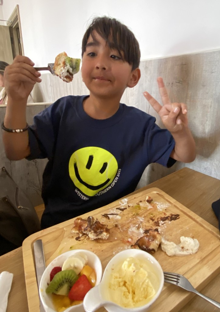 After all that walking, it was high time for an ice cream break. We found this Candy Cafe on a side street and decided that this was the perfect treat. Bodhi demolished the waffle with fruit and ice cream in no time flat.