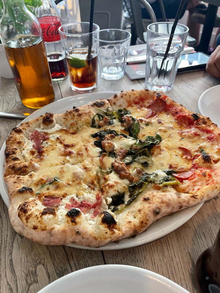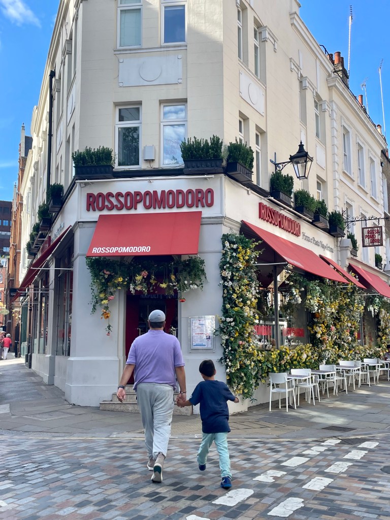 Rossopomodoro happens to be a chain, but you would never guess it. This one is right in the center of Covent Garden. The pizza was delicious and the atmosphere was bellissimo. Bodhi is always less cranky when he gets food in his tummy. But we were also crashing and it was almost time for our show. Espresso to the rescue!