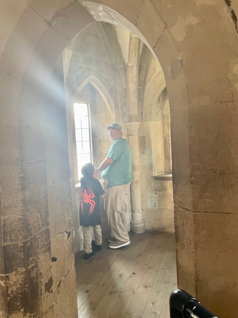 So maybe we did entice him into the tower with stories of ghosts. Ghost stories are what Ira obsesses over. When Bodhi was younger, during the pandemic, he and Ira would go to the Delaware Dam Park. They’d sit on the bench, Ira would tell ghost stories with happy endings. This has carried on over the years. Until now. At the Tower of London. Where ghosts are a real possibility. A lot of people died behind these doors. There was a marker of where Anne Boleyn was beheaded, and historical facts about the torture endured in the dungeon. So ghosts—Bodhi and Ira went on a hunt.