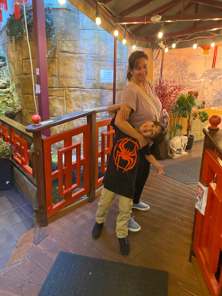 A few years ago, every photo of Bodhi was with his tongue out. These days, it’s a peace sign. Let’s hope he sticks with that for awhile as opposed to the other hand gesture I usually see from older kids. Ira says the peace sign inherited Asian trait.