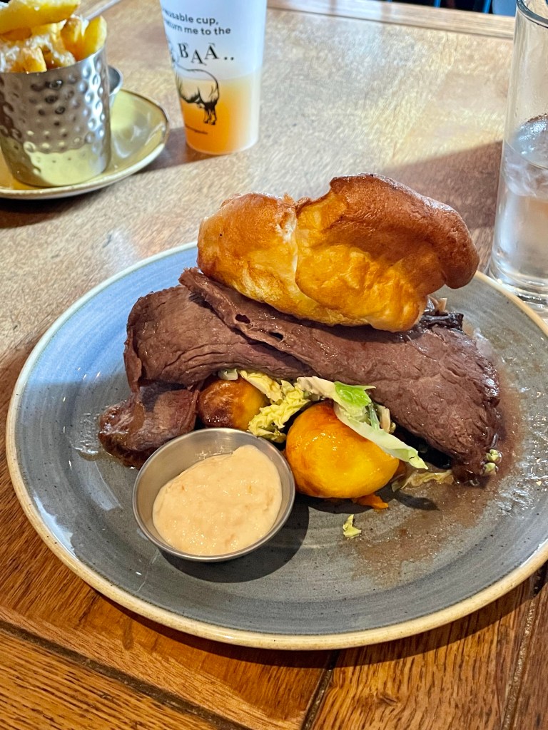At the end of our route was a pub, The Double Locks, which was having a Sunday Roast and we were ready to try some pub food. It did not disappoint! This charming little place, however, is very popular and we were happy we got there earlier enough to find a seat. The seating outside would have been perfect for watching the water, but the cloud cover and the wind chased us inside next to a window. Maybe next time!