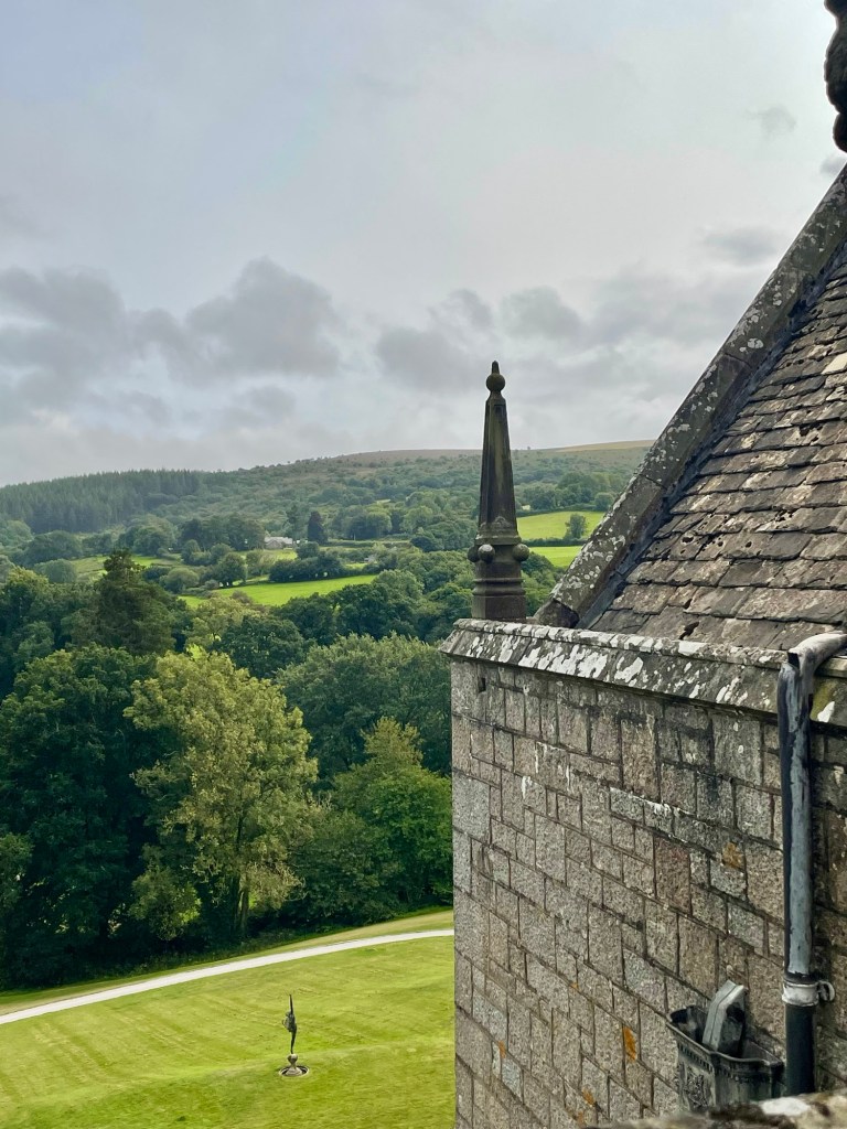 When we secured our trip to the UK, Ira immediately started looking for places to go. This is what he does. So for our anniversary in 2023, he booked us a stay at the Bovey Castle in Dartmoor National Park. We were all looking forward to seeing castles, but I never dreamed that we would be able to stay at one, too. After barely getting settled in Exeter, we were off to the castle. Driving in England is a hair-raising adventure. Driving in the England in Dartmoor National Park even more so. The roads were narrow and winding. Sometimes, we stopped long minutes to let cars coming from the other direction pass. It allowed us to enjoyed the scenery on the way there, except Ira got car sick and Bodhi fell asleep. As we got to the Bovey Castle, the car ahead of us pulled over and young boy and his mother came out. He bent over, pale and about to lose his lunch. Motion sickness in Dartmoor is a thing.