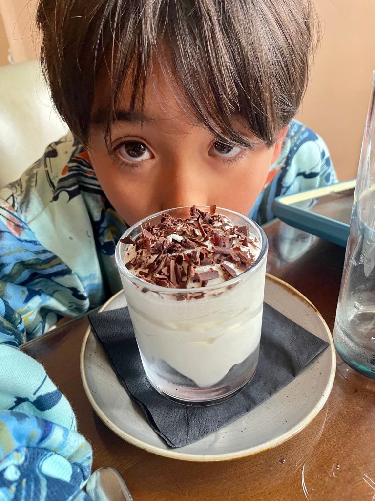 We also got to play tennis on grass courts, something neither Bodhi nor I had done before. The ball doesn’t quite bounce the way it does on paved courts so it was a learning experience. After that, it was time to dress up for our fancy dinner. We had been looking forward to this all day!