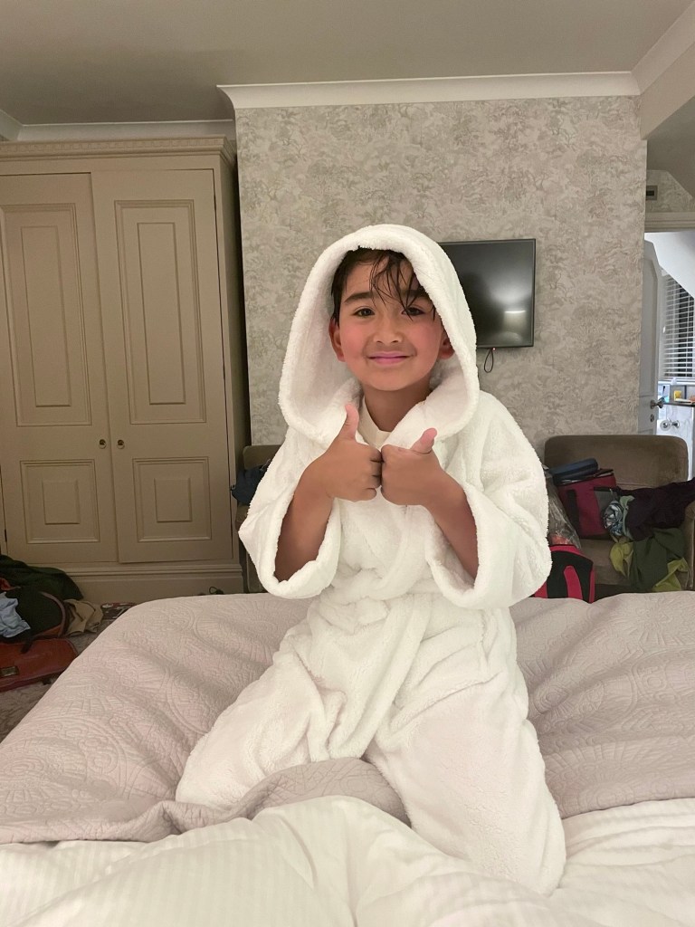 Who would have thought there would be a Bodhi sized fluffy robe? He was super stoked to take a bath and put it on.