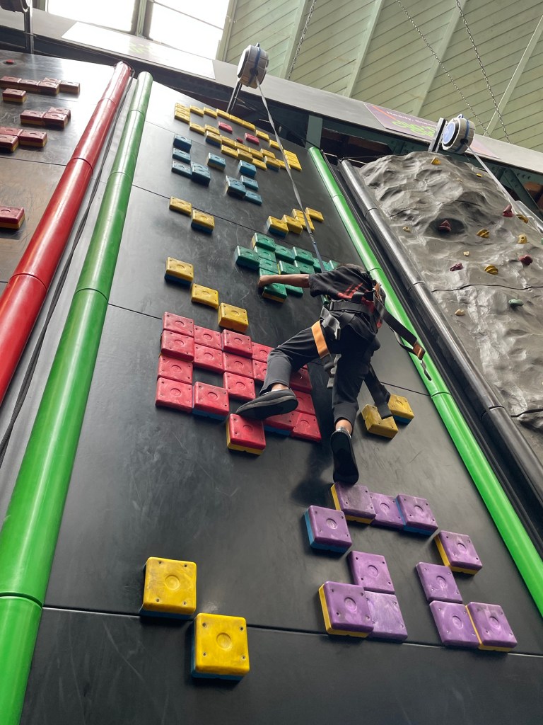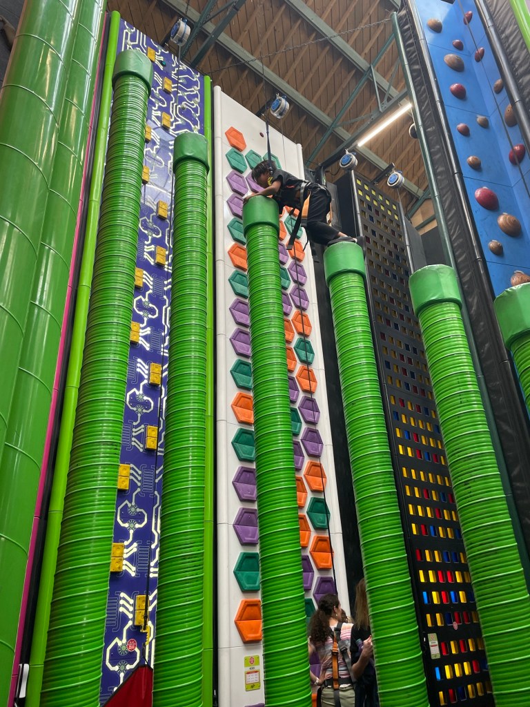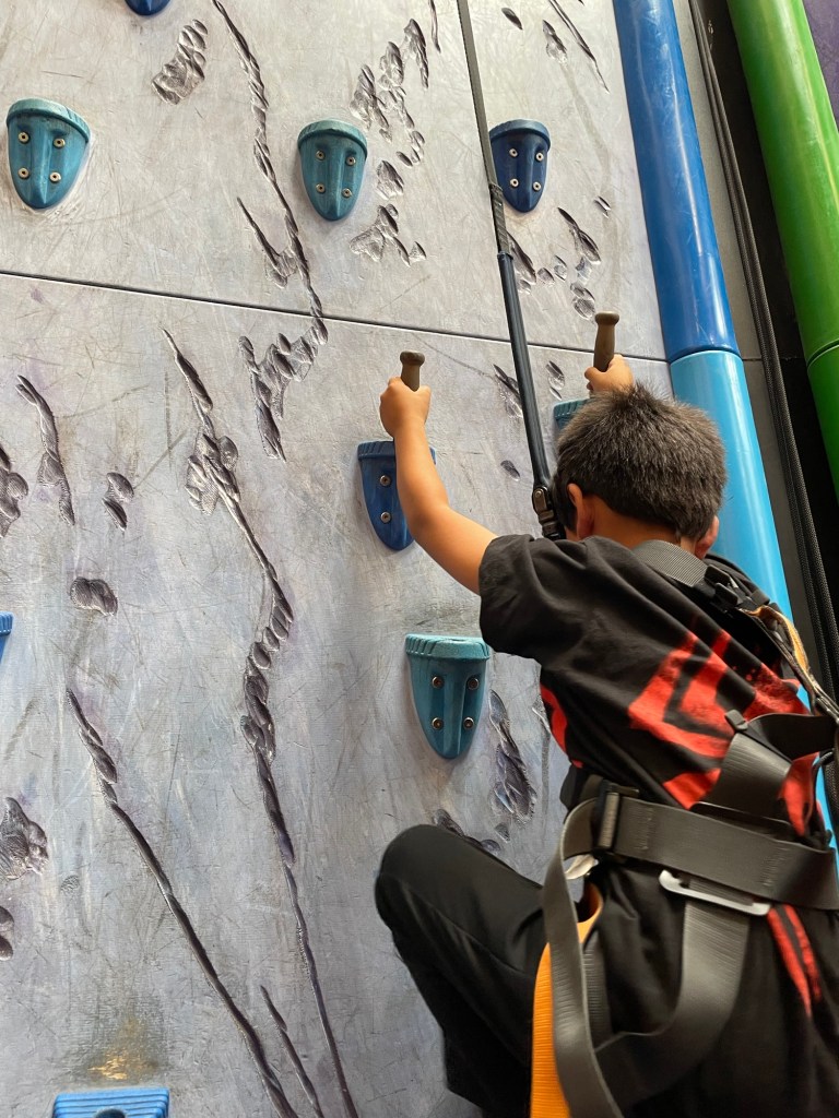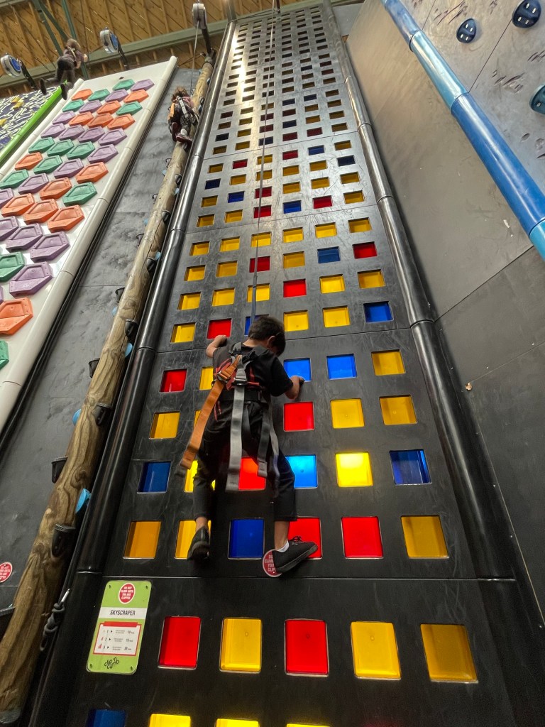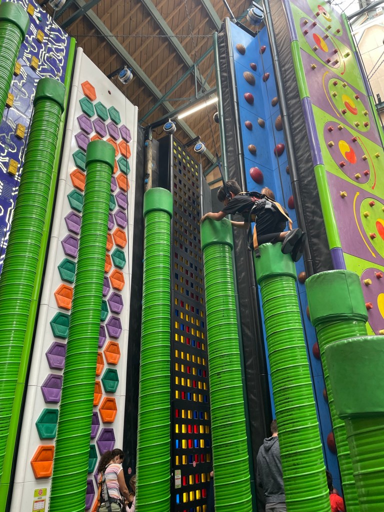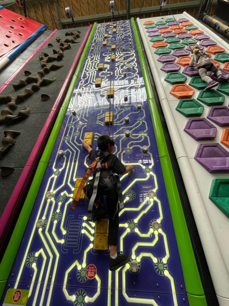 Every single one of the walls had an auto-belay, which allows an individual to climb without the use of a belayer — the person who manages the rope to catch the climber on the other end in case of a fall or a slip. Our place back in Ohio had only a few with the auto-belay, which is why I got certified so I could support Bodhi. I actually found these walls to be much harder because they were so different!